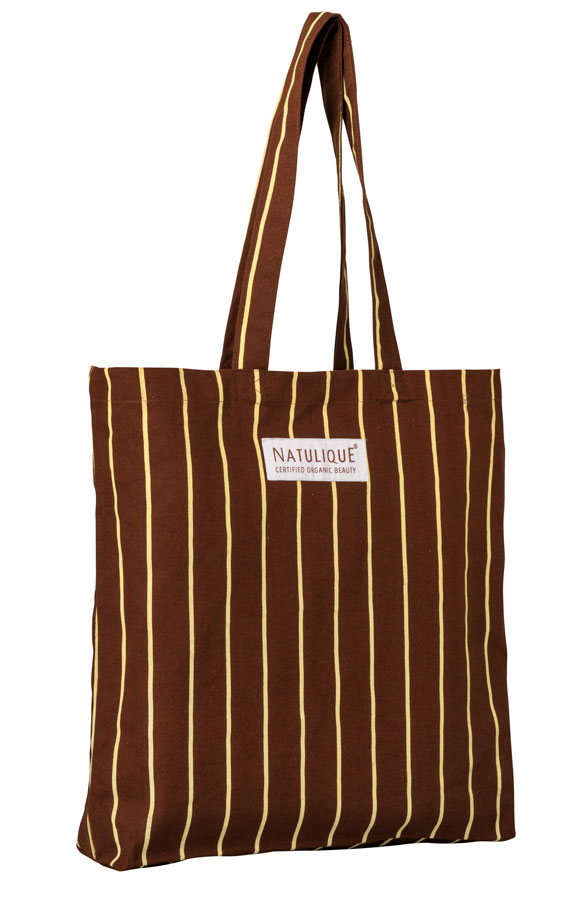 Stribet mulepose lavet i kraftigt kanvas. Posen har et påsyet satinlabel der giver et eksklusivt look.