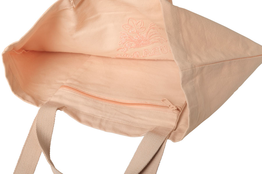 Muleposen har dobbeltsæt webbinghanke, broderet logo og indvendig lomme med lynlås.
