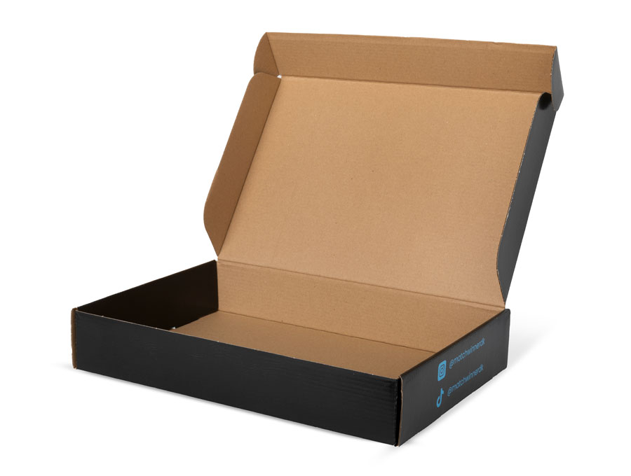 Forsendelsesæske med tryk og logo udvendigt. Postæsken kan tilpasses i målene til et specifikt produkt og egner sig særdeles godt til forsendelse.